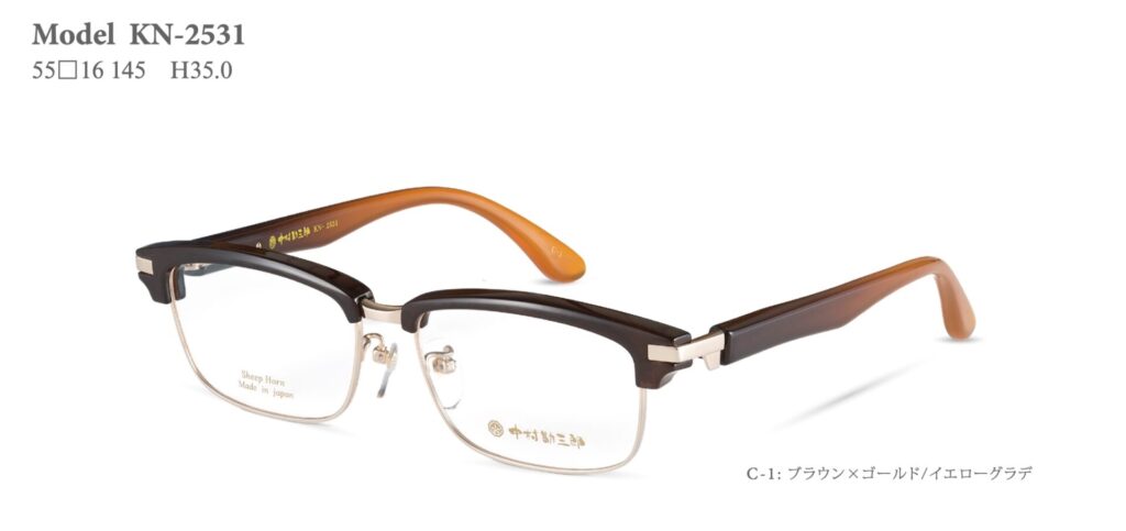 特筆すべきは、テンプル(つる部分)に贅沢に使用されるシープホーン(羊の角)という希少な天然素材。